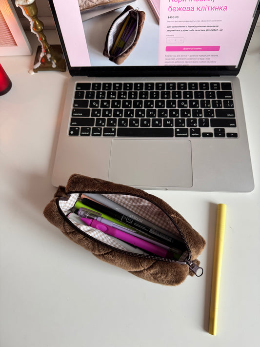 Косметичка-пенал Коричневий/бежева клітинка